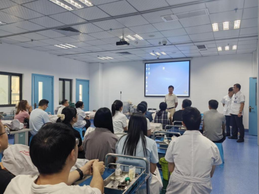 本次活动得到多方高度重视与积极参与:临床技能实验教学中心副主任辛志军教授、呼吸内科杨晓敏教授、专家督导组龚芳泽教授、杨伟明教授,以及中心全体教师现场参会;此外,华南理工大学附属第六医院(佛山市南海区人民医院)、复旦大学附属浦东医院(上海市浦东医院)两家单位的临床技能培训课程组,通过线上平台同步参与本次活动。