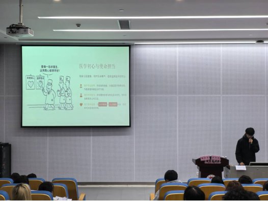 今年免试攻读首都医科大学研究生的党员魏承意则结合自身,详细介绍自己在校学习期间坚持标准,严格要求,树立以人民安全为宗旨作为自己职业发展的理想,保持对生命的热爱与韧性,积蓄不平凡的力量,实现青春理想,用专业与仁心守护生命的希望,努力为健康中国贡献青春力量!从小切口印证大道理,让党的创新理论深入人心。
