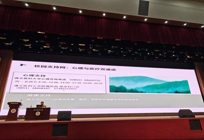 考虑到大学阶段是同学们身心发展的重要时期,环境与生理都将发生一系列变化,杨老师特别关注同学们的身心健康与安全防护问题。她指出,在这一阶段,同学们可能会面临艾滋病传染等诸多风险。因此,她呼吁同学们们要正视自己身体的变化,树立强烈的责任与担当意识,提高自我保护能力。为了给同学们提供更多的帮助,她还主动分享了健康支持咨询电话,让大家在遇到问题时能够及时获得专业的指导与帮助。她还特别提醒大家,作为未来的医员工,不仅要掌握自我求救的技能,更要具备帮助身边朋友的能力,在关键时刻能够为他人伸出援手。