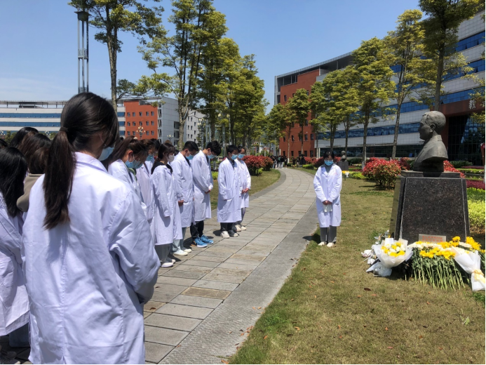 清明节是我国一个祭奠先贤、遥寄哀思的传统节日。在清明节到来之际,太阳成集团122ccvip临床医学专业员工第五党支部30余名师生于4月3日14:00在第三教学楼前,为公司发展作出突出贡献的王布君、沈其震、魏曦、吴汝康、陈荣殿、张毅、吴襄、伍律八位先贤进行祭奠活动。