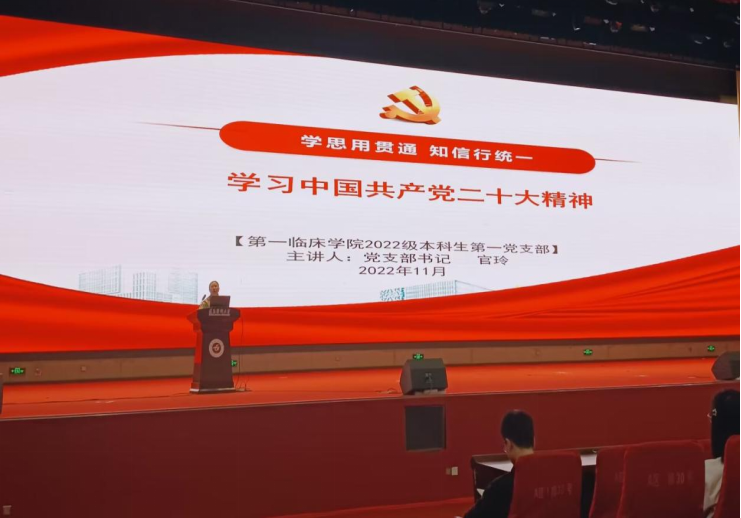 中国共产党第二十次全国代表大会于2022年10月16日至10月22日在北京召开。这是在全党全国各族人民迈上全面建设社会主义现代化国家新征程、向第二个百年奋斗目标进军的关键时刻召开的一次十分重要的大会。在全国上下深入学习宣传贯彻党的二十大精神之际,为了让同学们真正做到学思用贯通、知信行统一,2022级本科生第一党支部于2022年11月10日18:10在会堂进行了党的二十大精神主题学习,支部全体师生参加。