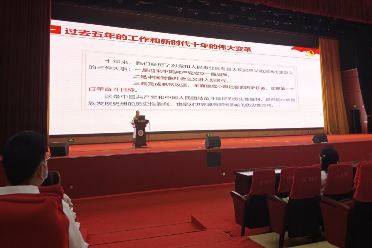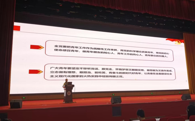 最后,官老师结合习近平总书记在党的二十大报告中对青年的寄语:“广大青年要坚定不移听党话、跟党走,怀抱梦想又脚踏实地,敢想敢为又善作善成,立志做有理想、敢担当、能吃苦、肯奋斗的新时代好青年,让青春在全面建设社会主义现代化国家的火热实践中绽放绚丽之花”,鼓励同学们要以青春之热血、青春之干劲,肩负起国家民族的希望,在党的领导下,与时代同心同向同行,踔厉奋发,笃行不怠!