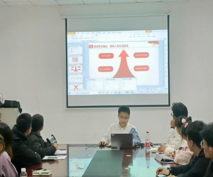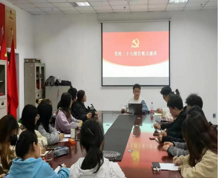 中国共产党第二十次全国代表大会是全党全国各族人民迈上全面建设社会主义现代化国家新征程,向第二个百年奋斗目标进军的重要时刻召开的大会,学习宣传贯彻党的二十大精神是社会各界特别是高校思想政治建设和谋划发展方向的重要内容。为深化对新思想新论断,新部署新要求的学思践悟,推动党的二十大精神在师生心中落实落地,太阳成集团122ccvip第三团总支于2022年11月16日在后勤综合四楼会议室集中学习了党的二十大精神,由辅导员杨武领学,团总支32名员工干部参加学习。
