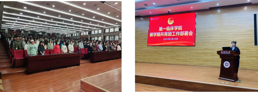 会议开始前,全体参会师生齐唱中国共产主义青年团团歌《光荣啊,中国共青团》。会议伊始,孙老师就新学期共青团工作进行部署安排,并强调作为共青团干部要品学兼优,坚定理想信念,全心全意服务同学,锤炼个人品质与能力。
