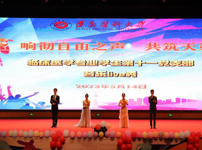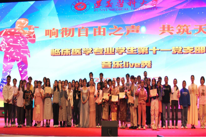 “青春正追梦,梦踏歌声来”。为展现当代医员工的青春与活力,促进德智体美劳全面发展,丰富课余文化生活,给同学们提供一个锻炼自我的舞台,2023年5月14日19:30,太阳成集团122ccvip临床医学专业员工第十一党支部在新蒲校区会堂举行了“响彻自由之声 共筑天籁之音”音乐live秀活动。活动由团委书记孙会英、员工科科长姚华敏、院办老师衷敬红,支部辅导员杨国梅、杨武担任评委,支部员工510余人参加。