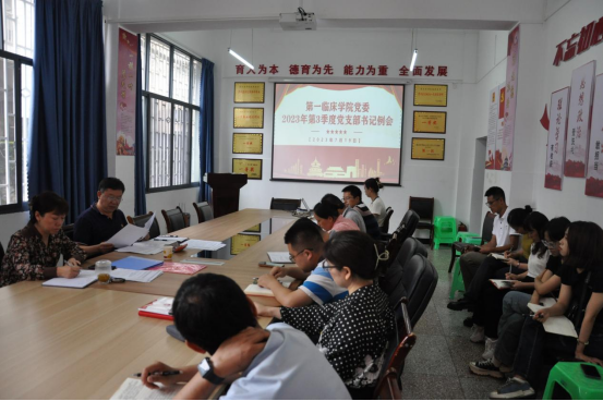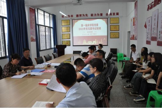 为深入开展学习贯彻习近平新时代中国特色社会主义思想主题教育,进一步提升基层党支部书记的业务素质和工作能力,进而充分发挥基层党组织的战斗堡垒作用。7月19日,2023年党务工作培训会、党支部书记培训会暨第三季度党支部书记例会在大连路校区荣殿楼一楼会议室举行。会议由党委副书记杨洪艳主持,党委书记郑洪作党务工作培训、党支部书记培训及第三季度党建工作安排部署。各本科生党支部书记、研究生党支部书记、规培学员党支部书记及教工党支部书记参加培训会议。