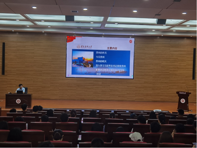 郑洪书记聚焦深入贯彻习近平总书记视察贵州重要讲话精神和对贵州工作系列重要指示精神,结合自身的亲身体会,用大量详尽的数据与案例,从昨天、今天、明天三个维度,对贵州经济社会发生的巨大变化进行了分享,对新国发2号文件进行了深刻解读。郑洪书记指出,党的十八大以来,以习近平同志为核心的党中央把脱贫攻坚摆在治国理政的突出位置,把脱贫攻坚作为全面建成小康社会的底线任务,组织实施了人类历史上规模最大、力度最强、惠及人口最多的脱贫攻坚战,贵州作为全国脱贫攻坚主战场之一,得到了习近平总书记的亲切关心和特殊关怀,今天的贵州,彻底撕掉了千百年来的绝对贫困标签,正迈向共同富裕的康庄大道,贵州能够按时高质量打赢脱贫攻坚战,最根本的是有习近平总书记掌舵领航和党中央坚强领导,最重要的是有中国共产党领导和中国特色社会主义制度的显著优势,最关键的是坚持以脱贫攻坚统揽经济社会发展全局,最主要的是一切为了人民、紧紧依靠人民,最有力的是把全面从严治党贯穿脱贫攻坚全过程和各环节。最后,郑洪书记希望青年学子厚植家国情怀、矢志艰苦奋斗,立大志,明大德,成大才,担大任,将小我融入大我,以青春奉献祖国,在中国式现代化的贵州实践中贡献力量。