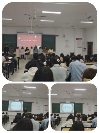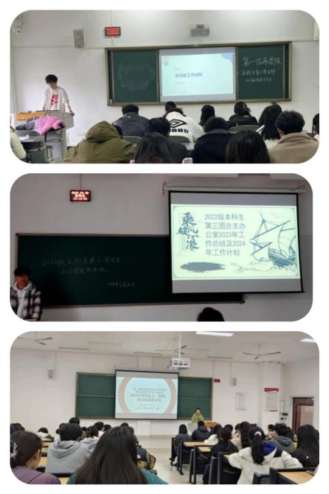 会上,团总支各部门、各班级和团支部依次从其基本情况、员工干部个人述职情况、工作成效与总结、工作展望等方面,对上一年的工作、感悟和收获进行了系统阐述和全面总结。正如团总支副书记王雨涵在述职汇报中提到的“初心不改、奋斗不息”,支部全体员工干部秉承认真履职、积极上进的工作态度,以“团结、务实、奋斗”为工作原则,在服务同学的路上不断探索前进,充分体现了“全心全意为同学服务”的工作宗旨,在各项工作的奉献进取中锤炼自我,挥洒青春。