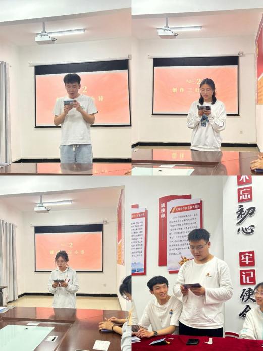 本次活动由预备党员沈鑫玉主持,共有“红色家书诵读、三行小诗创作、云上祭奠缅怀、共唱红歌浸润”四个环节。