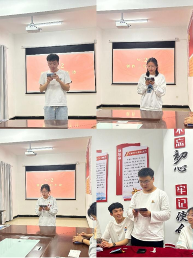 活动一红色家书诵读:由代龙登、王亚蕾、左玉单等党员带头组队,分别沉浸式朗诵了《可爱的中国》《妈妈,稻子熟了》《夏明翰写给母亲、妻子、大姐的三封家书》《传承红色基因,谱写时代篇章》四篇选文。革命战争年代,一封家书便是一封遗书,通过诵读使同学们深入了解先烈们的英勇事迹和无私奉献精神,激发大家的爱国热情和家国情怀。