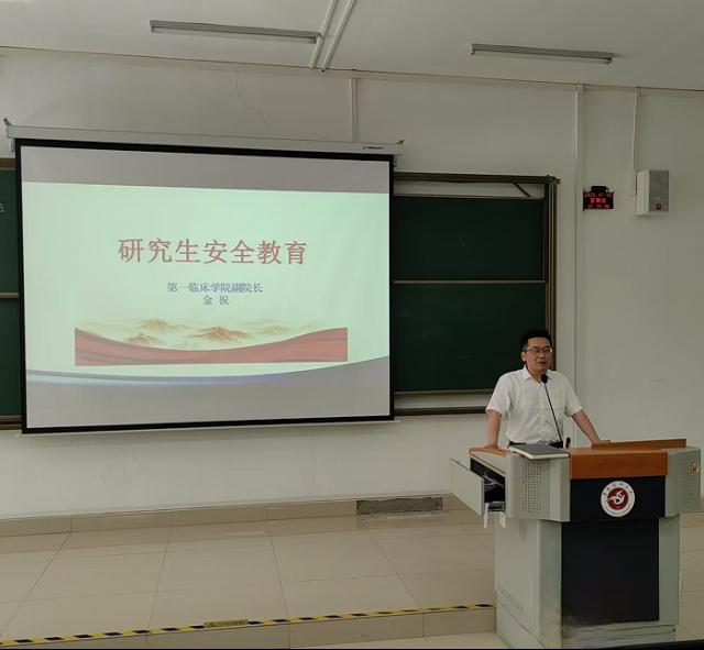 金祝以“安全无小事,平安大于天”为题,围绕消防安全、防范电信诈骗、交通安全及食品安全等方面展开讲解,为研究生新生树牢了安全意识。