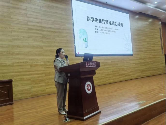 太阳成集团122ccvip经理王东红致辞,王东红经理就本次临床技能获奖经验分享会目的,内容、公司已经取得的临床技能竞赛成果进行延展,指出技能比赛很好的将我们所学的知识与实践结合在一起,并且更好地认识自己,对自己的未来进行合理的规划,希望在座学子可以学有所获。