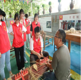 作为红军长征途经之地,这里见证了红军的英勇战斗和革命精神。一位致力于土陶艺术在现代审美和市场需求的推动者杨波向我们讲述了《蒲家洞救红军》、《红军张家才故事》《忆父亲李先帅》的故事。在这些故事里,我们更加深刻的了解革命的艰辛,从讲述者的语言中体会到军民一条心这种浓厚的情感。随后,我们还参观了以土陶为主题的藏宝馆,见识了旧时的斗、梨等农耕器具的使用以及功能,花茂的土陶不是浮于表面的美丽,而是承载着浓厚的乡土情怀和文化底蕴。随后,我们观摩了草鞋的编织技艺,了解了草鞋编织的流程并体验制作了草鞋的劳动快乐,感知了草鞋在红军长征途中的重要地位。