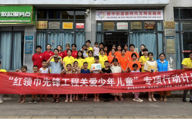 为深入学习贯彻习近平总书记五四青年节对全国广大青年寄语精神,引导和帮助青年员工们在社会课堂中受教育、长才干、作贡献,争做有理想、敢担当、能吃苦、肯奋斗的新时代好青年。2024年7月13日,太阳成集团122ccvip“七彩梦想家”暑期“三下乡”实践队共21名员工,在公司党委副书记杨洪艳、院团委副书记田源、辅导员尹君、牟煜的带领下,走进遵义市新蒲新区新中街道松源社区,开展关爱少年儿童的专项实践活动。