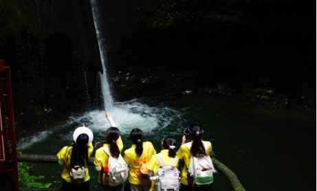 赏翡翠山水,品诗歌文化。在双门峡诗歌谷景区和红果树风景名胜区,队员们用感官体验、用脚步丈量。谷内峰峦叠嶂,瀑布与潭水相连,展现了喀斯特地貌特有的群瀑盛景。眼前的山水景色如同历史的长卷,让人感受到历代文人对山水之美的赞叹与敬仰。队员们深思山水在诗歌创作中的重要性,以及先贤对自然的热爱之情。景区的珍稀植物和天然洞穴是其独特之处,绥阳地貌瀑布、河流、溶洞、森林与奇特山石等丰富的自然景观充分展现了喀斯特地貌的独特魅力。
