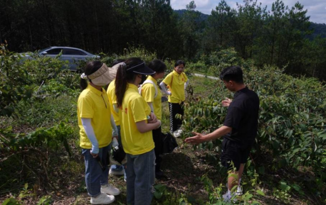 金银花果香,遇最美飞水。最后一站,实践队抵达了绥阳县小关乡飞水村。在村支书盛行强的带领下,队员们参观了金银花种植基地,看到了在海拔一千多米的山坡上,簇簇金银花的绿意盎然。昔日的荒土荒山变为金山银山,实现了村集体经济保收益。之后实践队还进入了李子、血桃果园进行采摘,阳光之下,李子颗颗饱满圆乎,血桃个个色泽鲜艳,队员们真切体验了乡村振兴的甜美成果。小关乡在金银花种植和李子、血桃的丰收中,守护了绿水青山的自然之美,承载了浓厚的乡愁情感,也传承了乡村文化的独特魅力。