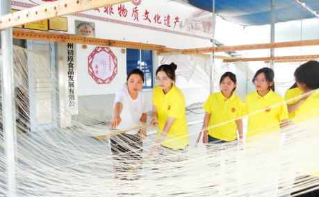 麦香飘万里,农耕永不息。队伍一行到达绥阳空心面制作非遗工坊深入考察。他们系统的了解空心面的制作流程,包括和面、醒面、擀面、晾干、包装等多个环节,并亲身参与体验了部分工序,深切感受了空心面制作的独特魅力。在考察过程中,队员们对空心面制作非遗传承人唐铖进行了专访。唐铖详细介绍了空心面的历史渊源、制作工艺的精细之处、空心面与其他面食的显著区别以及其在当地文化中的特殊地位。她说:“空心面制作不仅仅是一种食物的制备过程,更是一种对传统文化的传承与发扬,对传统手工艺的坚守与尊重。”