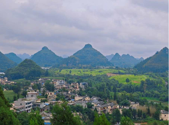 双乳峰及山下村落