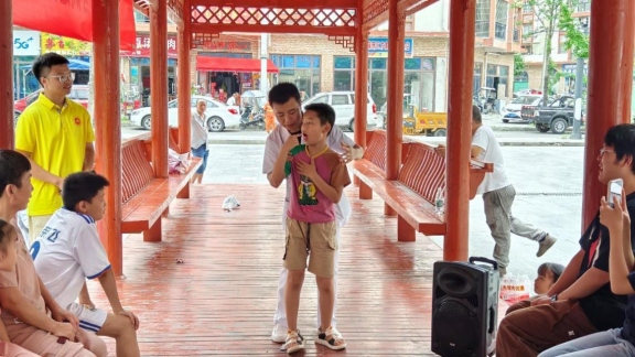 9:00,实践队开展了“夏季预防溺水宣传——不做孤泳者”宣传活动。曾意同学以创意手势舞开场,瞬间聚焦孩子们的目光。随后,潘香蓉同学深入浅出,从游泳安全要点到急救技能,再到自救策略,全方位普及防溺水知识,提升了儿童及居民的水上安全意识,促进了家庭与社会对防溺水教育的关注与重视。