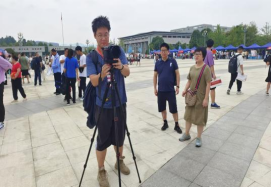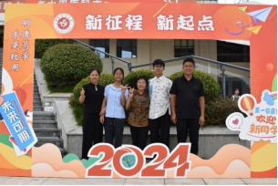 新生及家长在打卡点合影留念