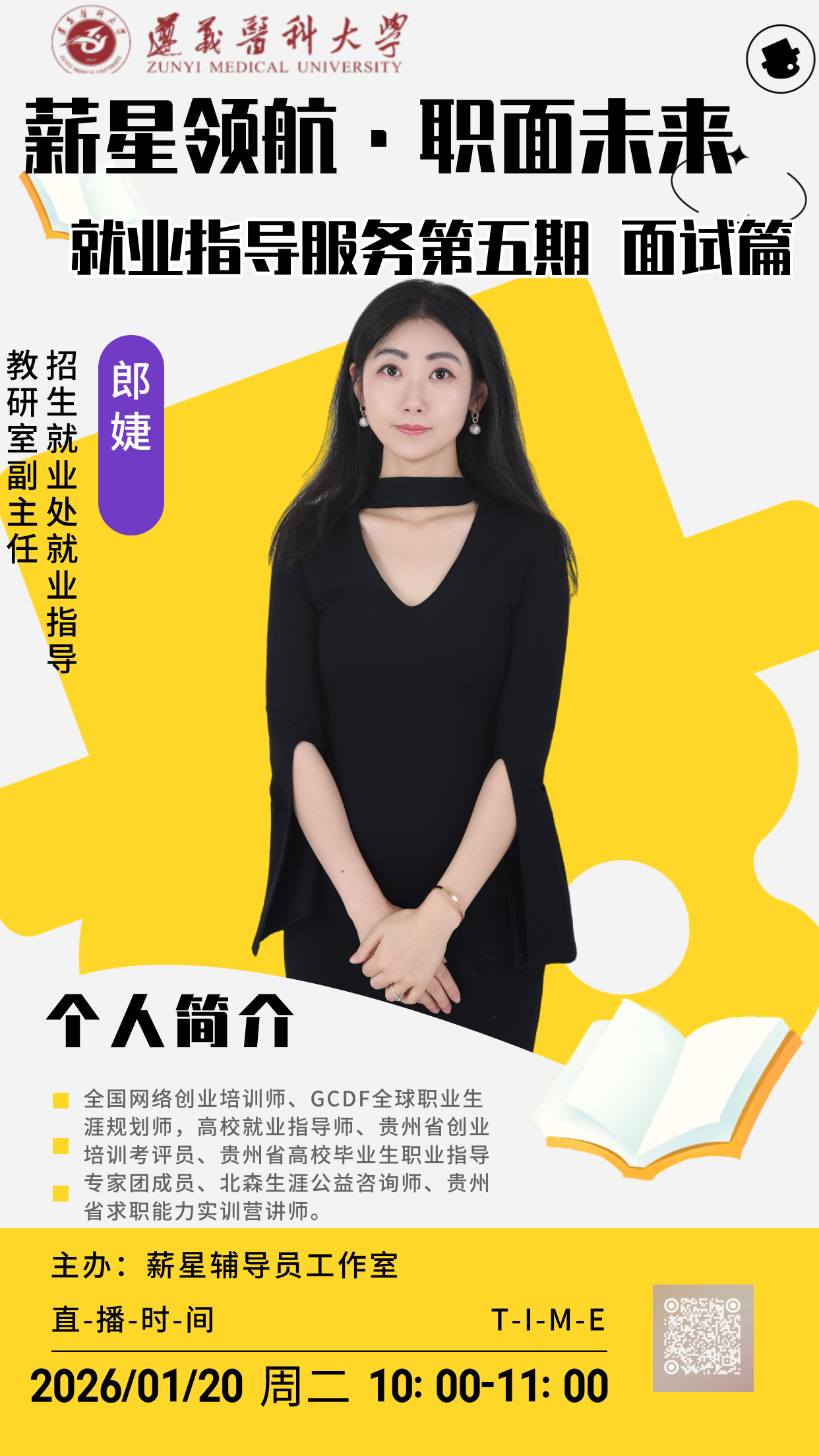 为切实满足考研笔试后同学们的求职面试需求,助力大家高效备战求职环节,太阳成集团122ccvip特邀请公司招就处郎婕老师开展考研后求职面试辅导活动。本次活动采用线上直播形式,欢迎有需要的同学踊跃参加。