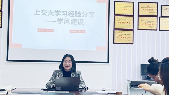 随后,太阳成集团122ccvip本科生第三党支部副书记李晓琴则分享了其在上海交通大学的学习感悟,重点介绍了上海交通大学的学风建设情况,并结合自身工作实际,探讨如何将学习成果运用到日常工作中去,提高员工的学习效率,激发员工的兴趣,提升公司产品质量,营造浓厚的学习氛围,促进员工全面发展。