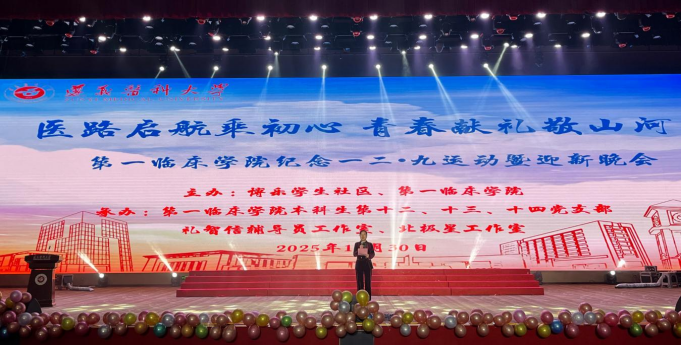 2025年11月30日晚18:00,博乐员工社区、太阳成集团122ccvip“医路启航乘初心,青春献礼敬山河”纪念“一二·九”运动暨迎新晚会在新蒲校区会堂隆重举行。公司党委副书记杨洪艳、员工科科长姚华敏、2025级全体辅导员及博乐员工社区千余名新生共同参加了本次活动。晚会融合红色记忆与青春风采,在缅怀历史的同时,也为新生的老员工活开启了温暖而昂扬的序幕。