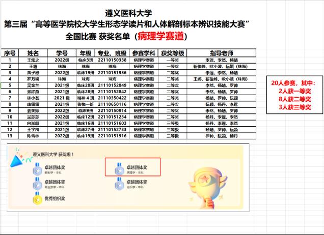病理科/病理学教研室在“第三届高等医公司校老员工数字形态学读片和数字解剖标本辨识技能大赛”中喜获佳绩