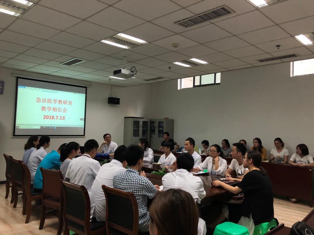 为促进师生相互交流与学习,进一步提升课堂教学质量,2018年7月13日,急诊医学教研室在第三住院楼负一楼急诊科示教室召开了2017-2018学年第二期《急诊医学》课程教学相长会。相关任课老师以及2014级临床医学等专业的班委代表参加了本次会议,会议由急诊医学教研室副主任周满红教授主持。