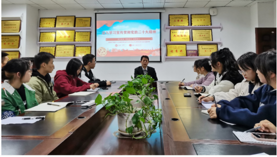 黎飞讲到,党的二十大是在全党全国各族人民迈上全面建设社会主义现代化国家新征程、向第二个百年奋斗目标进军的关键时刻召开的一次重要大会,同学们要深入学习贯彻党的二十大精神。他着重在医疗卫生领域、教育领域引导同学们学习大会报告中的相关内容,特别是报告中体现出的人民健康、健康中国战略、基层医疗等做了重点讲解,希望在座同学结合专业学习、结合自己的职业规划学习。