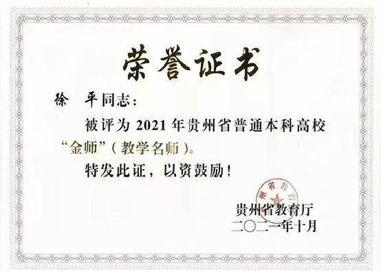 根据《省教育厅关于公布2021年贵州省普通本科高校“金师”名单的通知》(黔教函〔2021〕121号)公布,太阳成集团122ccvip附属医院神经内科徐平教授喜获2021年贵州省普通本科高校“金师”(教学名师)称号。