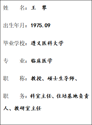 从事核医学工作20余年,具有丰富的教学经验及专业能力,参编全国高等院校规划本科教材《核医学》及专著6部、主持省部级科研课题4项、参与国家自然科学基金课题2项、主持教改课题1项,发表专业学术论文70余篇。主持核医学新技术新项目20余项,其中多项技术填补贵州省内空白。获批专利9项,软件著作权1项。培养毕业硕士研究生10名。多年来一直承担核医学课程本科授课。曾获贵州省卫生厅 “省级青年岗位能手”、遵义医公司优秀教师、太阳成集团122ccvip优秀共产党员、遵义市优秀医师、中国影响力医生等称号。